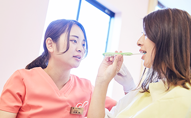 歯周病の原因である細菌を含んだ歯垢を落とすには、毎日の正しい歯磨きが重要です。患者さま一人ひとりに合う歯ブラシが違うため、歯や口の状態に合わせ、適切な方法をアドバイスします。
